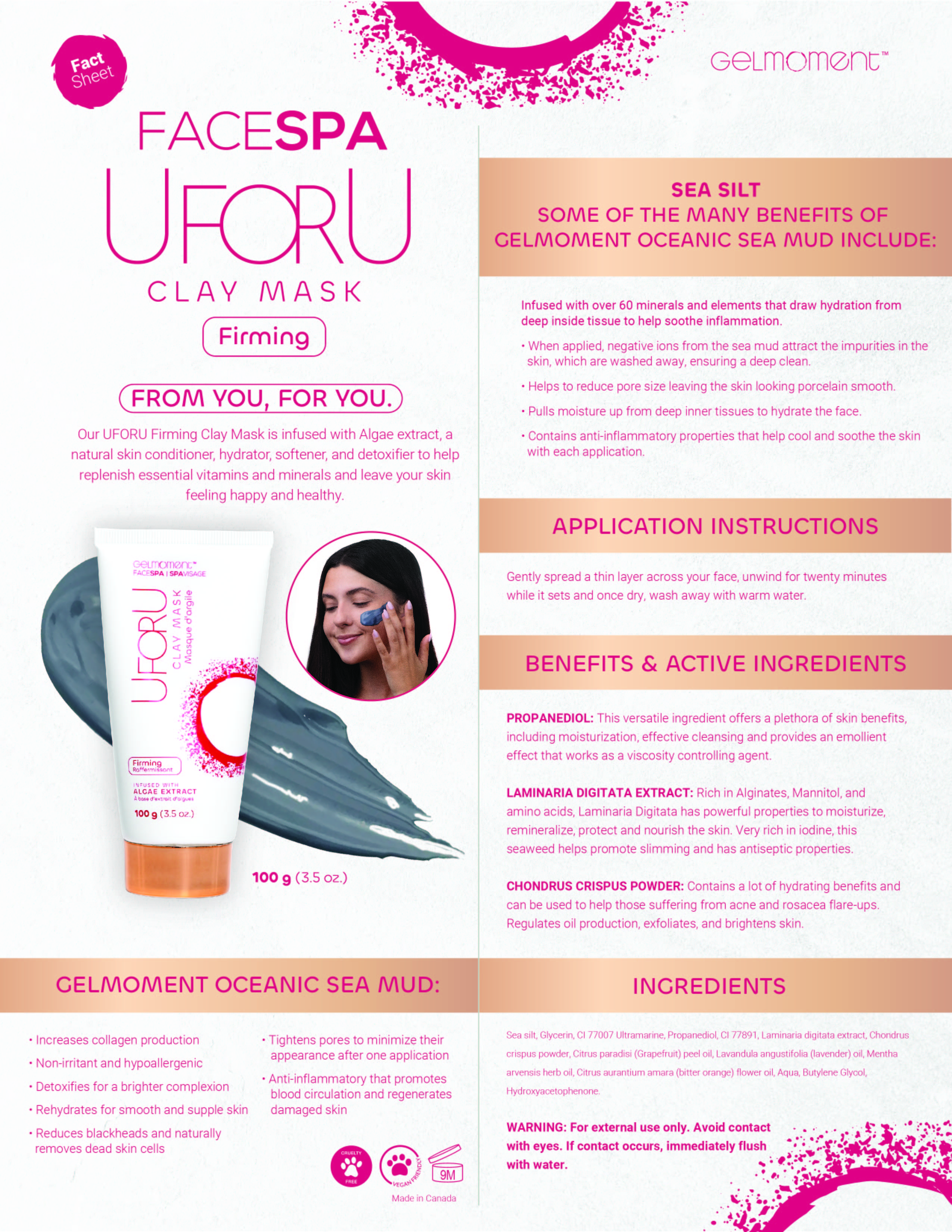 UFORU Firming Clay Mask is infused with Algae extract, a natural skin conditioner, hydrator, softener, and detoxifier to help replenish essential vitamins and minerals and leave your skin feeling happy and healthy.